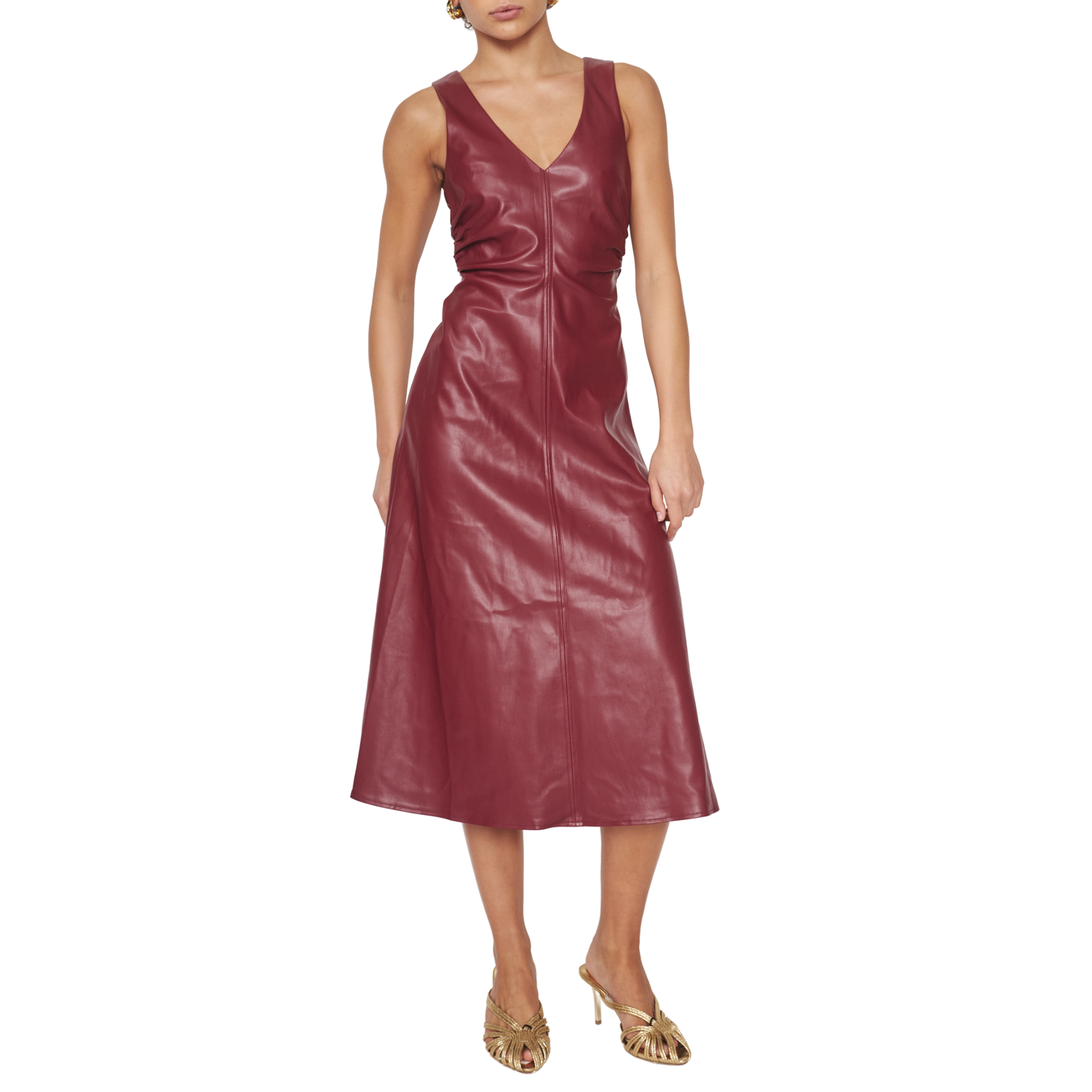 The Martha Vegan Leather Dress reimagines classic femininity through a modern, lens ready to be styled YOUR way- big or minimal. Cut from buttery-soft vegan leather, its clean lines and gentle sheen exude confidence without trying too hard. The V-neckline elongates the silhouette, while delicate ruching at the waist defines your shape with ease. Falling to a fluid midi length, Martha strikes the perfect balance between structure and movement. It’s the kind of piece that feels equally at home in a power meeting or at a candlelit dinner — refined, versatile, and just a little rebellious.